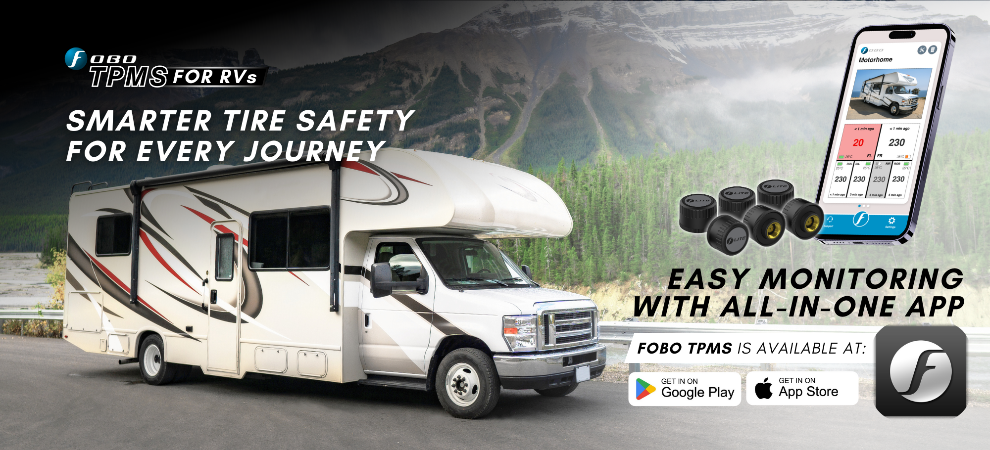 With FOBO TPMS for RVs, you can travel with confidence, knowing that your tires are continuously monitored throughout your journey. Early warnings alerts help detect potential tire issues before they escalate, reducing the risk of breakdowns and improving road safety. Powered by FOBO's advanced technology, every trip becomes safer, smoother, and more worry-free - so you can focus on enjoying the adventure ahead.